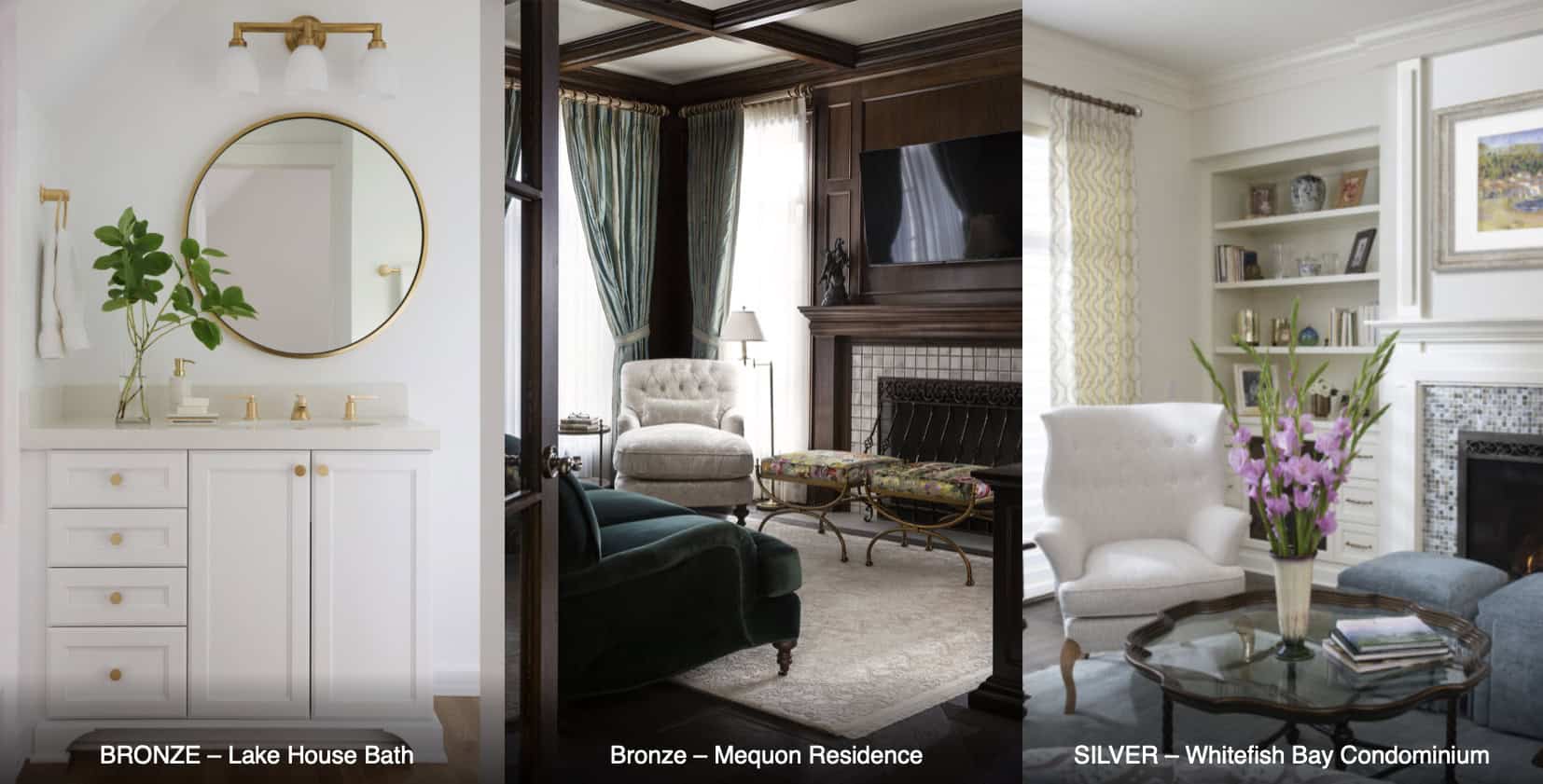Deep River Partners was honored by the American Society of Interior Designers – Wisconsin Chapter on March 21 at the ASID Design Excellence Awards. Deep River received three awards: Silver for an Entire Residence under 2,999 square feet for “Whitefish Bay Condo,” Bronze for Entire Residence over 2,999 square feet for “Mequon Residence,” and Bronze for Bath for “Lake House Bath.” Congratulations to Founder Richard Sherer, Interior Designer, Natalie Erickson, ASID; Interior Designer, and Leslie Dohr, ASID. These projects can be viewed under the Portfolio Section.