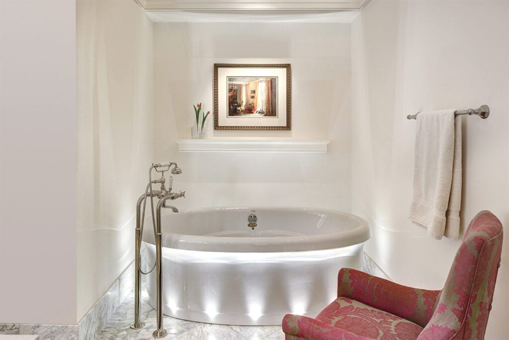 Leslie Dohr, ASID, Natalie Erickson, ASID and Nicholas Mather, AIA of Deep River Partners tackled the 297-sq.-ft. space with the objective of making the master bath the star of the master suite.