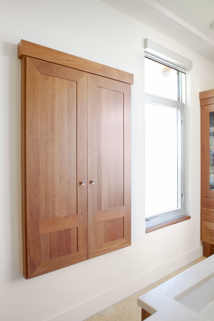 Designed to respond to this Client’s love of California light and natural Midwest materials we chose to juxtapose native Lannon stone, and hard-edged aluminum windows. Warm cherry soffits contrast the silver metal trim. Horizontal lines and deep overhangs suggest the Prairie style in this contemporary interpretation.
