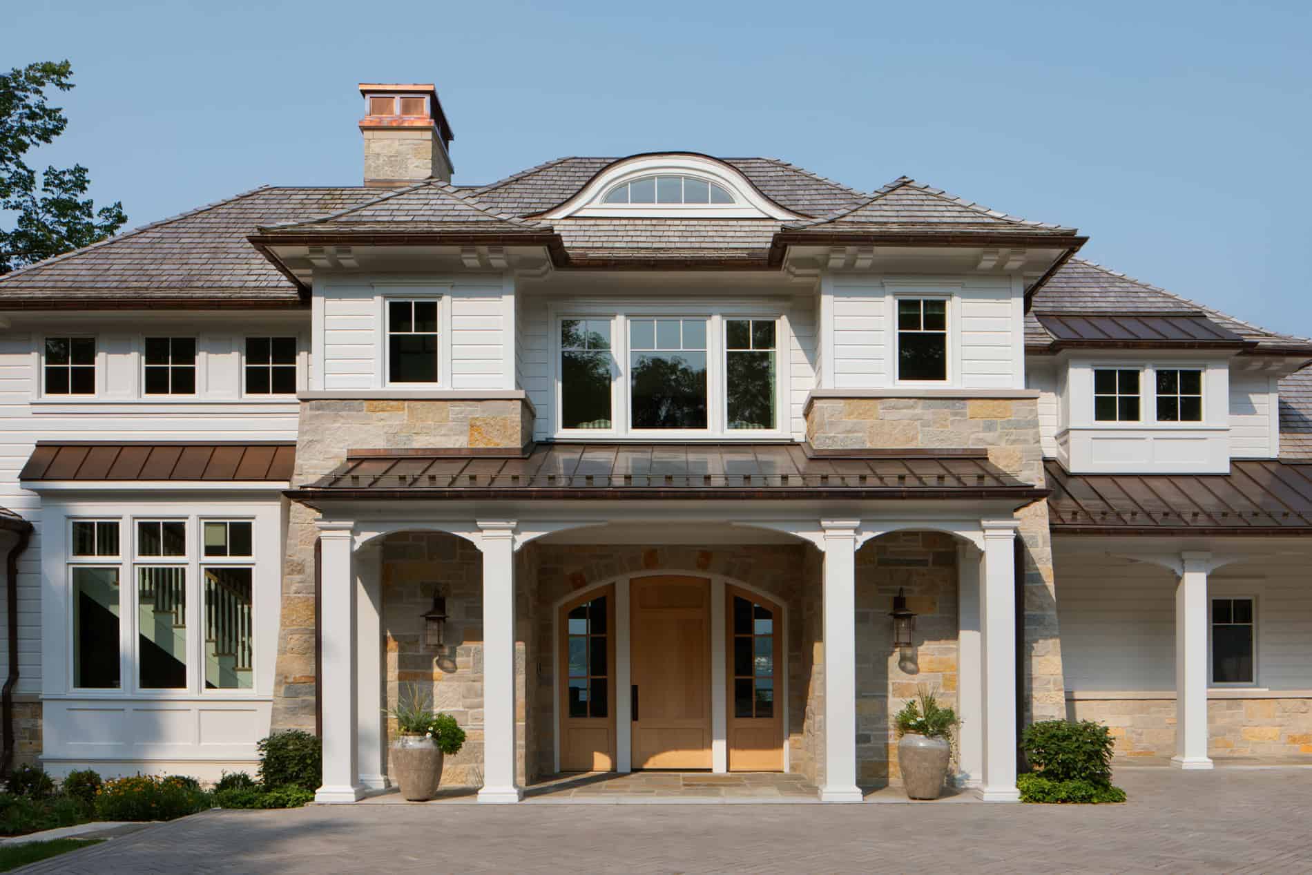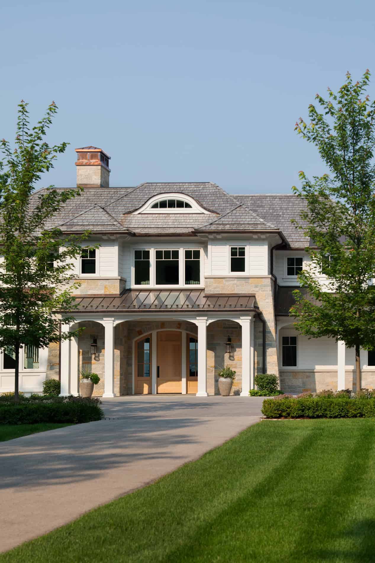 The Lake Country Retreat project is designed for generations to enjoy—welcoming, timeless, and tailored for life at the lake. Thoughtfully planned for effortless daily living and year-round entertaining, it also features elements that will gracefully adapt to aging in place and comfort. Rooted in natural materials—copper accents, limestone steps, cedar shingles, and a mix of local and regional stone—the home embodies a coastal-inspired presence along this Wisconsin shoreline.