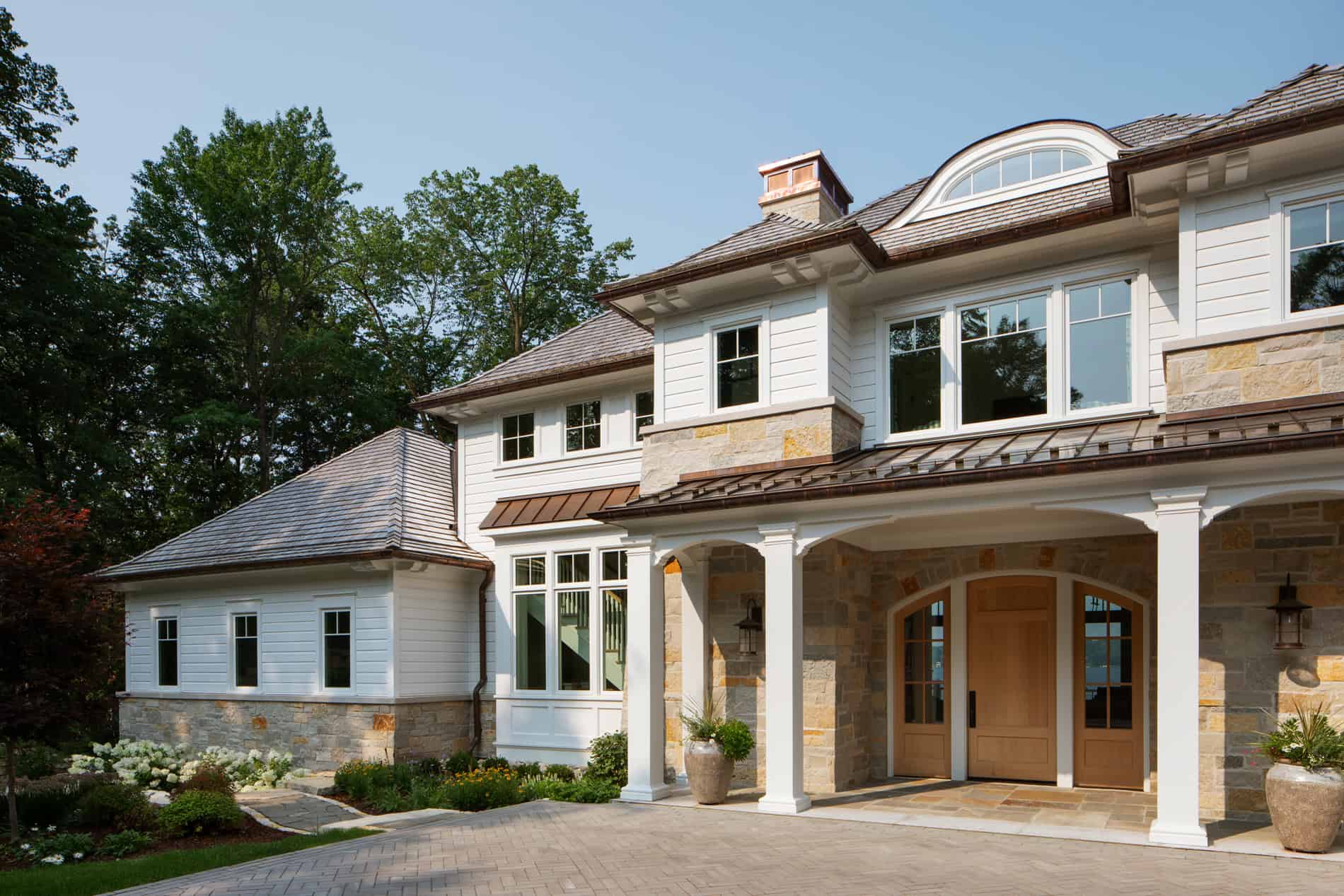The Lake Country Retreat project is designed for generations to enjoy—welcoming, timeless, and tailored for life at the lake. Thoughtfully planned for effortless daily living and year-round entertaining, it also features elements that will gracefully adapt to aging in place and comfort. Rooted in natural materials—copper accents, limestone steps, cedar shingles, and a mix of local and regional stone—the home embodies a coastal-inspired presence along this Wisconsin shoreline.