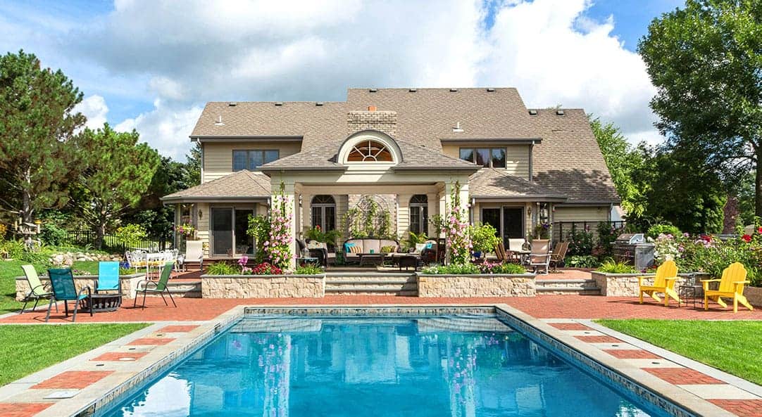 Through fully integrated architecture and landscape design, this rear yard becomes a pool paradise.