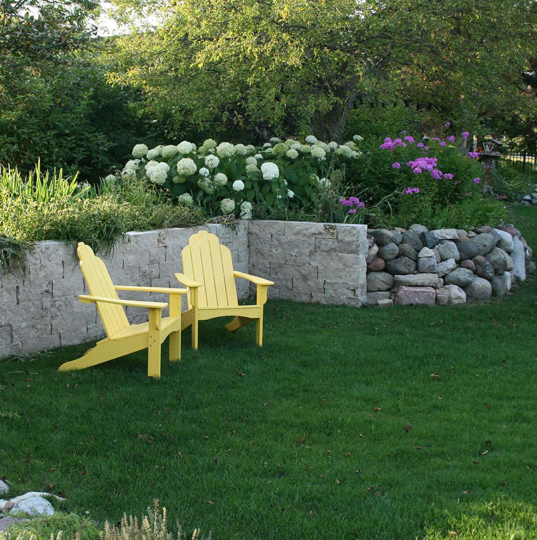 An 18 foot by 36 foot pool is the centerpiece of this luxury outdoor entertainment space. More areas for recreation and enjoyment surround the pool, including a covered pavilion, a dining terrace complete with grill area, and an open air lounge. Formal gardens outline and define each “outdoor room”, creating a park-like, picturesque setting that showcases the owner’s love of gardening. Seen as an opportunity, the challenge of the existing site’s sloping topography is used to create a design feature. The pavilion, dining terrace, and lounge are raised above the pool on a plateau, creating dramatic views of the pool below. They connect to the existing home by being adjacent to and at the same elevation as the home’s sun room and kitchen, letting the outdoor rooms feel like extensions of the indoor living areas. The retaining wall, at the face of the plateau, doubles as a seat wall.