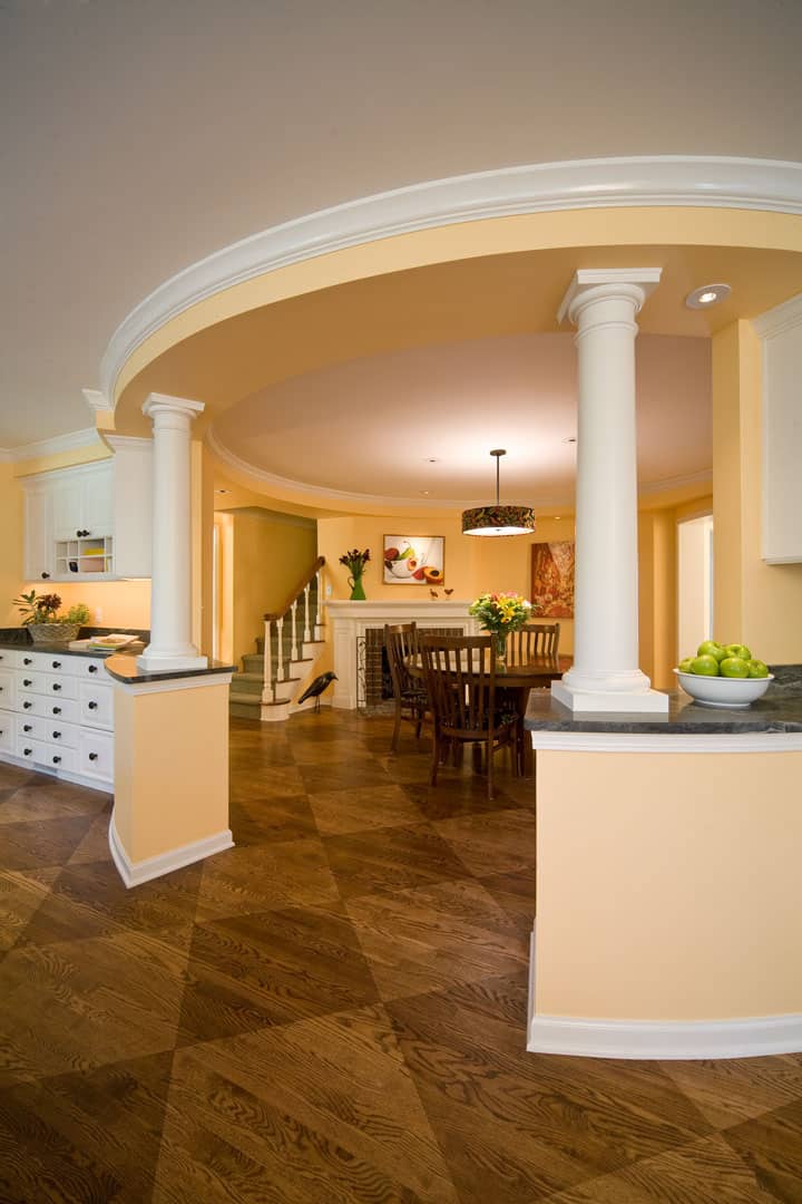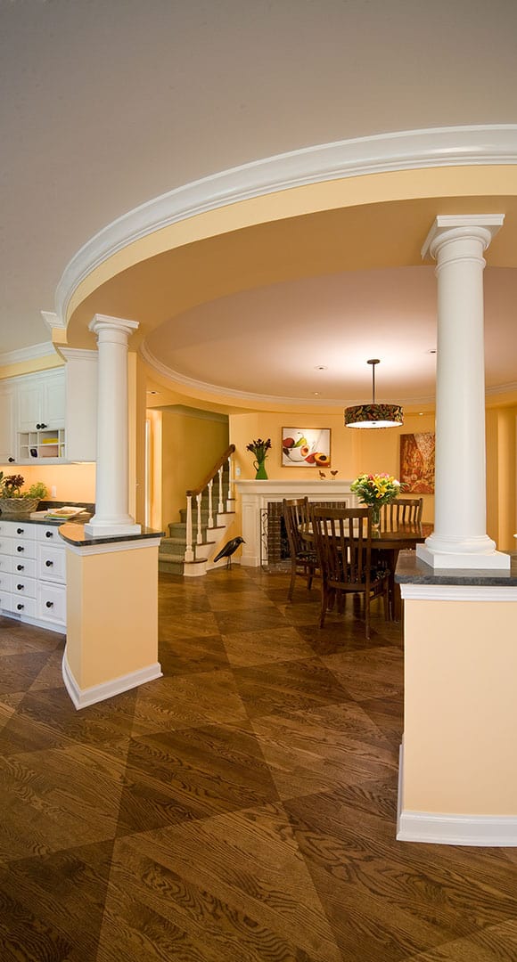 The existing outdated Kitchen and Breakfast Room were too small to support the family of five children, extended family gatherings, and entertaining friends. The homeowners wanted an atmosphere that was colorful, casual but elegant, and comfortable.