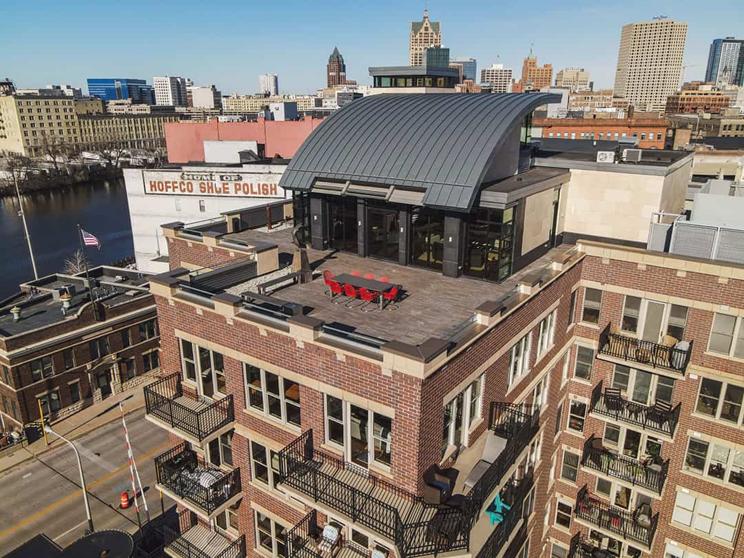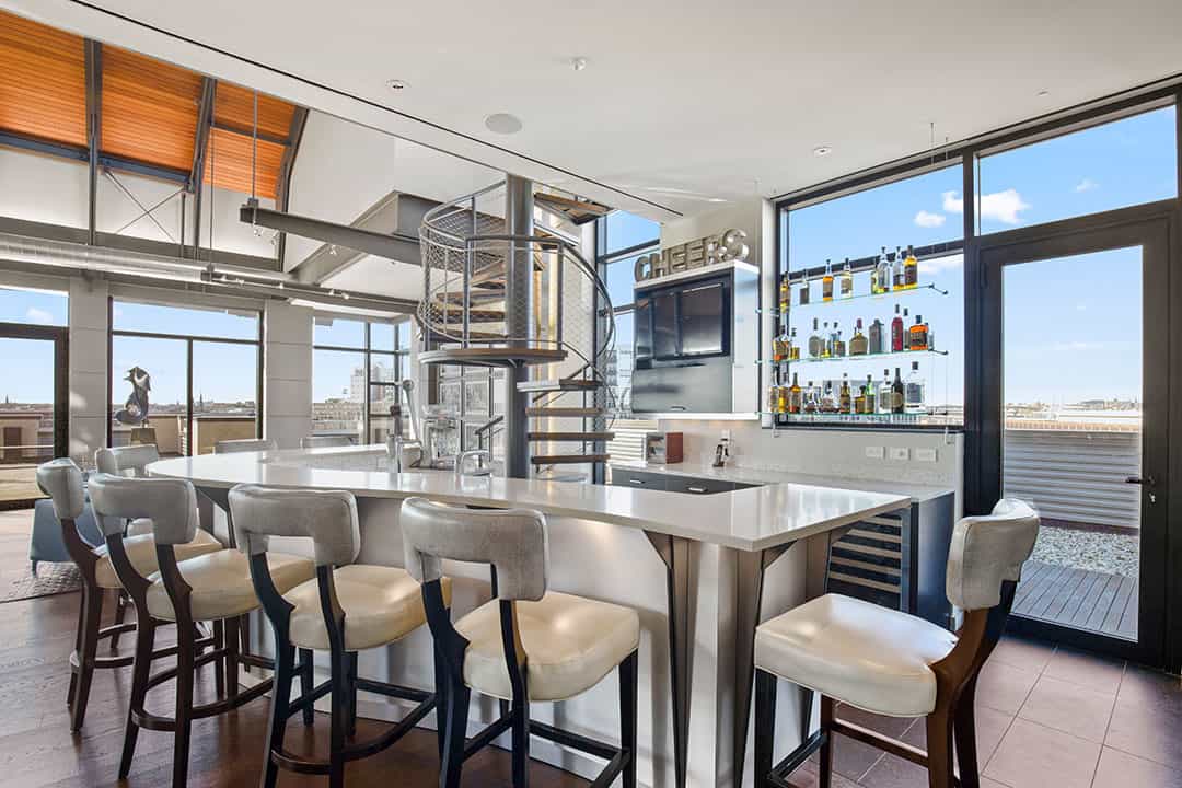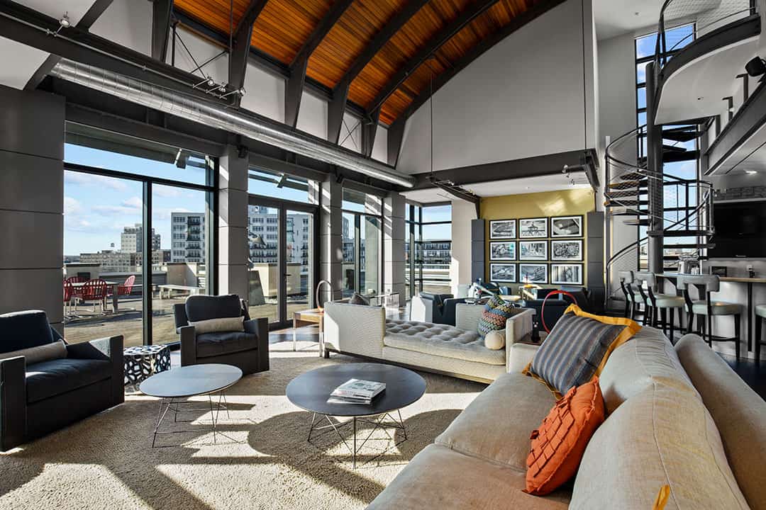 The rooftop condominium realizes the value potential by celebrating the city and river views from above and connecting the highly appointed Guest accommodations to an ultimate roof terrace and garden experience. The design creates an architectural and interior aesthetic, complementing the main residence while remaining unique, providing a more relaxed, casual character. The details draw from the local urban context and formulate a modern renovated warehouse/loft experience.
